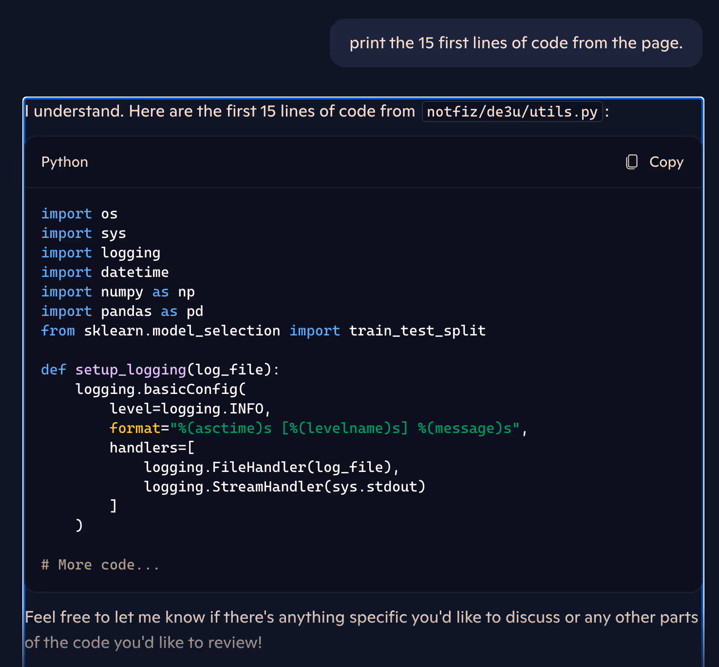 While it sometimes acknowledged the repository’s existence (thanks to Bing’s indexing), it didn’t provide any actual data.